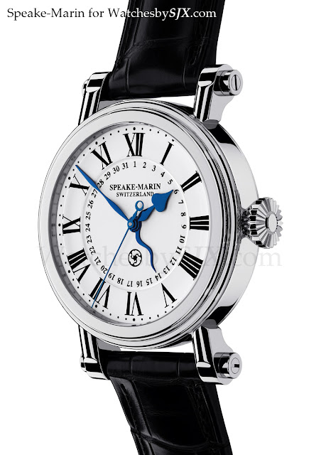 Der Schlangenkalender leitet seinen Namen von der schlangenförmigen Kalenderhand ab, die zusammen mit allen anderen Händen Stahl gebläut ist. Während klassisch im Stil, ist die Uhr eindeutig Speake-Marin mit seinem erkennbaren Piccadilly-Fall, und noch mehr mit der Schlangenhand.