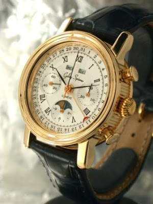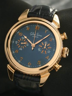Golay Spierer ist ein in Genf ansässiges Uhrenunternehmen, das sich auf die Herstellung von personalisierten Uhren spezialisiert hat. Diese individuell gefertigte Rotgold-Chronographenuhr aus dem Jahr 2002 beherbergt ein antikes Venus 175 Handaufzugswerk. Technische Daten: Uhrwerk: Handaufzug Venus 175; Ausführungen: hohe Qualität. "Côtes de Genève" endet auf den Brücken, gebrochene Schrauben, kreisrunde Platten. Gehäuse: Material: Rotgold 4N 750, Durchmesser: 40,0 mm, Dicke: 12,5 mm; Geglättet und poliert Zeiger: Alle Zeiger, auch aus zweiter Hand, sind aus massivem Rotgold , in Sonderanfertigung und in Handarbeit hergestellt. Armband: Blaues Krokodillederarmband mit Rotgold Golay Spierer Verschluss. Mehr Bilder: